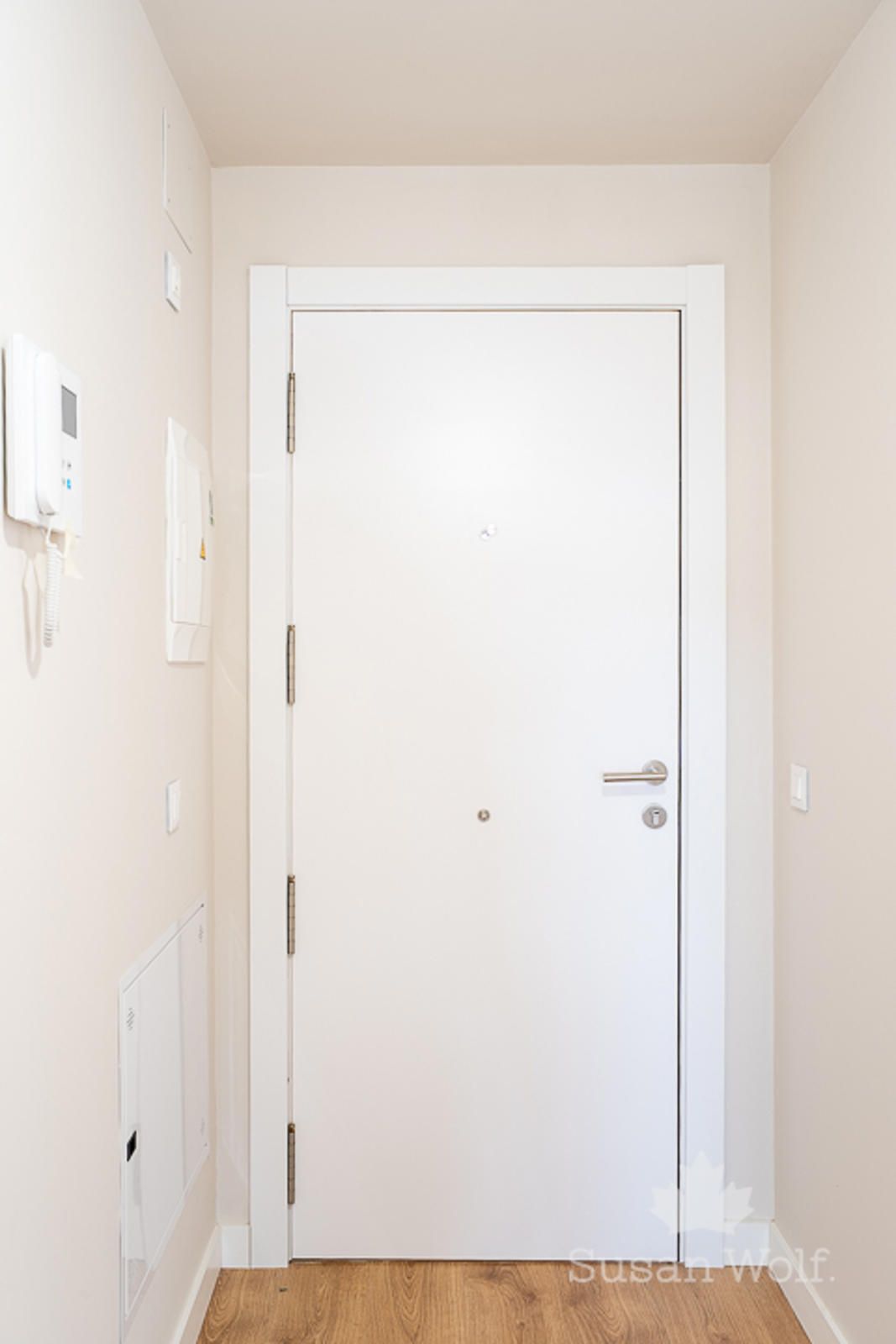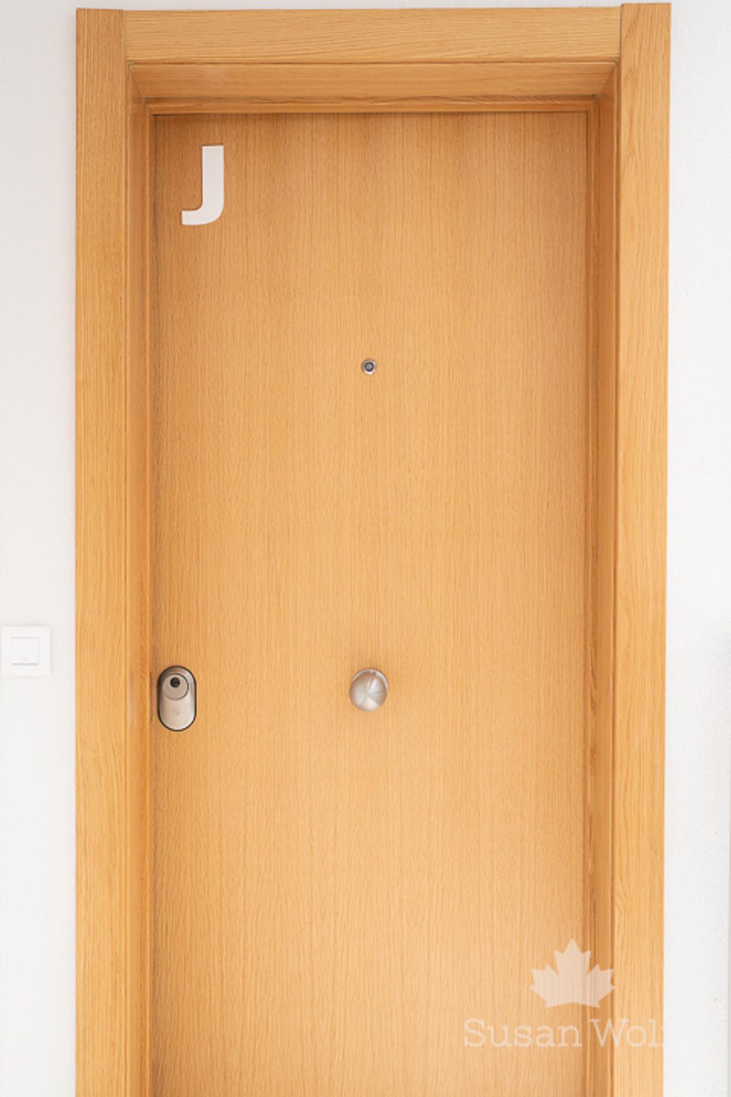 Puerta de entrada blindada con cerradura de seguridad.