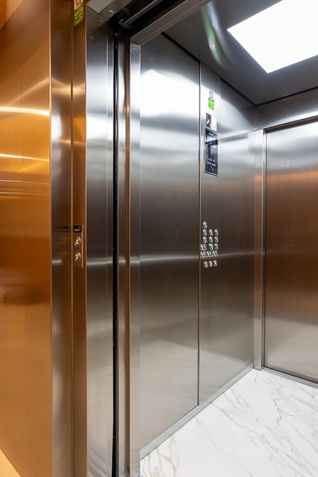 Ascensores con cabinas adaptadas para personas con movilidad reducida, con acceso al garaje mediante llave.