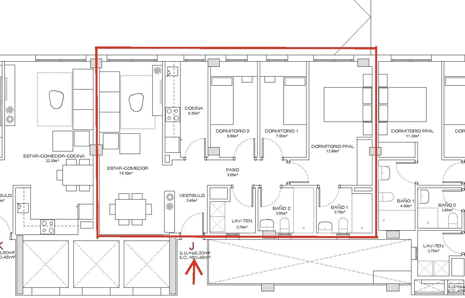 La propiedad cuenta con 80,48 m² construidos, distribuidos en 3 dormitorios (uno de ellos con baño en suite) y un segundo baño completo. Es completamente exterior, lo que garantiza una óptima iluminación natural y ventilación.